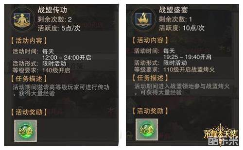 战盟传功是12点-24点期间,必须找同战盟的盟友进行传功。有次数限制,可以约几个固定好友每天固定传功,这样效率高。其实最好就在战盟盛宴的时候传,大家都在一个地图,两个活动的经验一下就拿了!