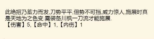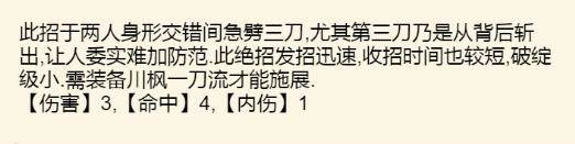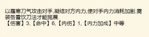 特殊效果:对手使用绝招时的内力消耗加剧