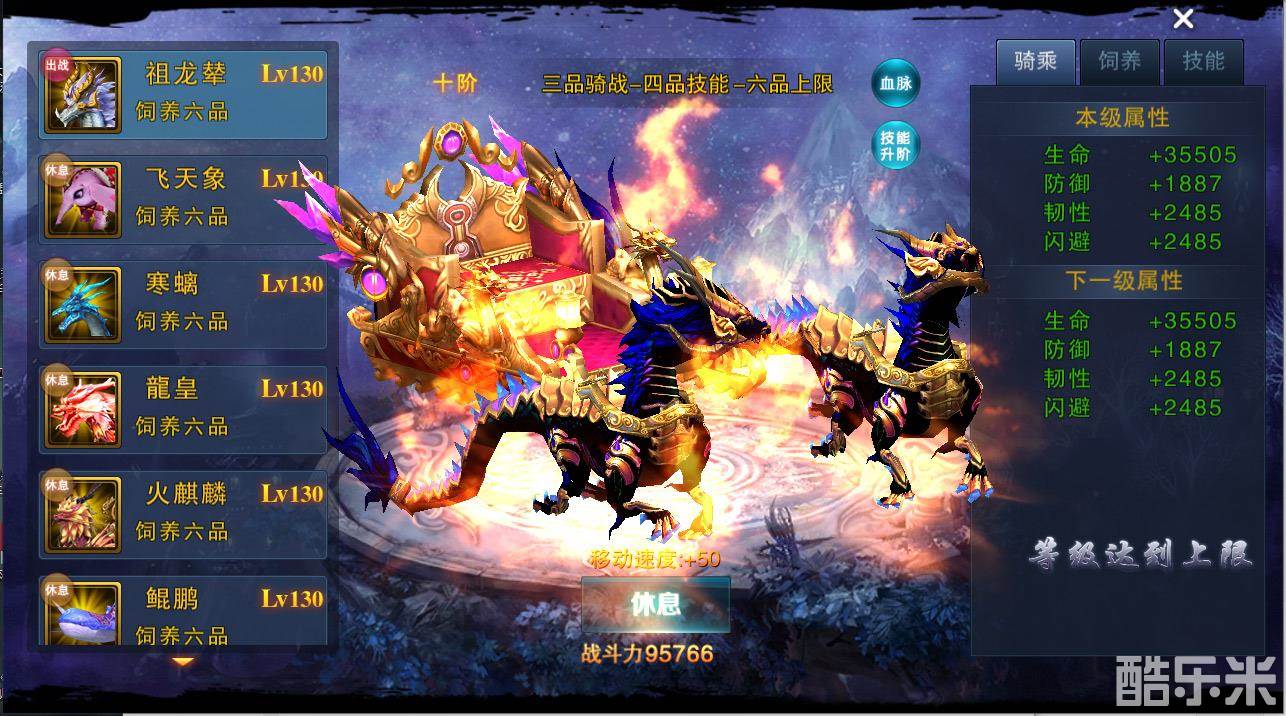 游戏中也是有多种威武霸气的坐骑可供玩家挑选,骑上自己喜爱的坐骑肆意奔走,通过饲养坐骑可以大幅度的提升坐骑属性,成就沙场霸主!