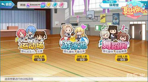 在《夏日甜心》中,体育馆不仅是锻炼身体的场所,还可以提高战姬们的综合属性哦,本次体育馆将会像甜心们开放运动场、游泳池、舞蹈房三种训练。别以为甜心们整天只会萌萌哒,其实各个都是身怀绝技的硬妹纸哦(= ̄ω ̄=) 。