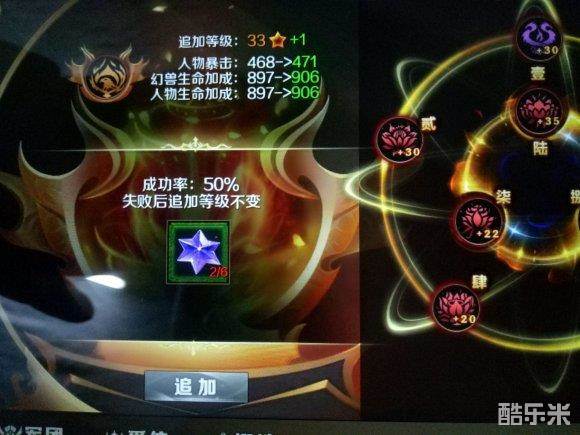 首先是星芒之火这就相当于砸装备的魔魂追加一样,开始我们主要砸6号上15,接着1-3-5-2后面随意为什么这样分自己试试就懂,神火结晶就相当于幻魔这个是10/20/30等级分的不过失败是不可能的,后面不知道本人也没搞上40级以上!说到这些可能多数人都已经差不多知道了,可能有看到这贴的不少懂行的骂随风这什么鬼帖大家都知道了!下面干货时间