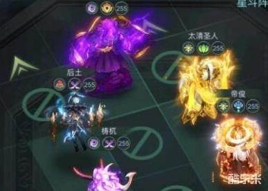 1.前排炎帝,中间从左到右是东皇太一和帝俊、最后从左到右是后土和白虎,使用星斗阵,有太清换掉东皇太一。
