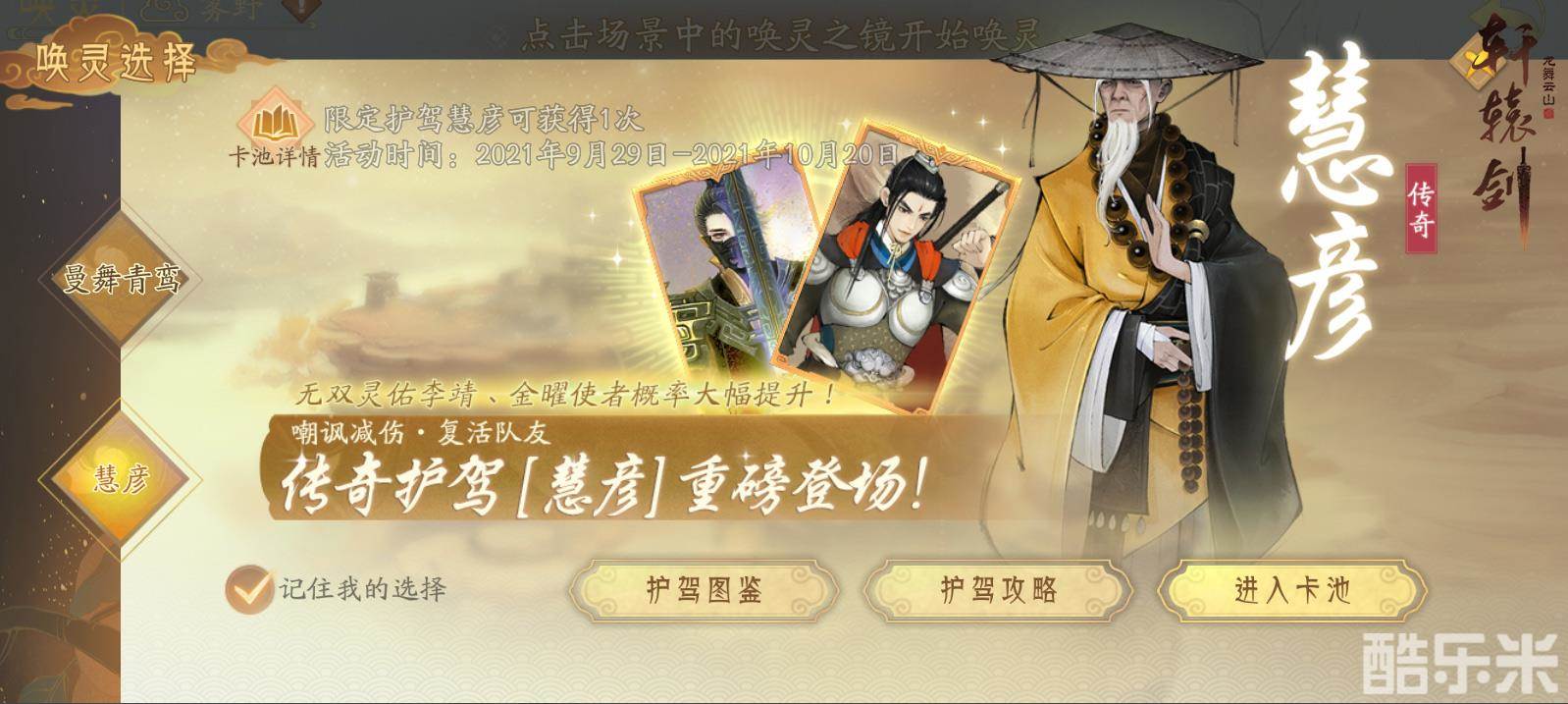 “慧彦”作为敏辅传奇护驾,能极大的提高团队生存能力。主动技能【我佛慈悲】能够嘲讽单体目标并降低其输出,同时提高自身坦度承受伤害。