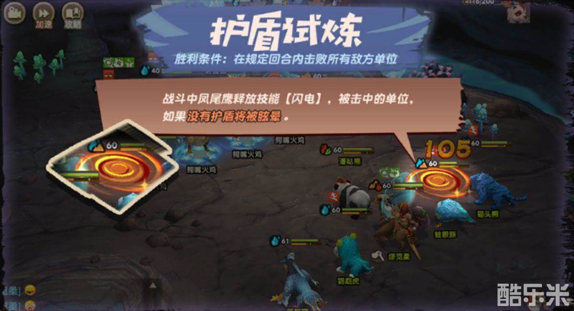 战斗中凤尾鹰释放技能时,没有护盾的单位会被眩晕。