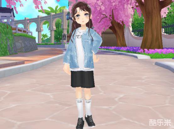 经典的黑白搭配,白色的中长款T恤配上宽松的黑色短裤,长度到小腿处的白色袜子十分显腿型,穿上黑色的运动鞋,最后再披上一件浅蓝色的牛仔外套,十足的盐系女孩。