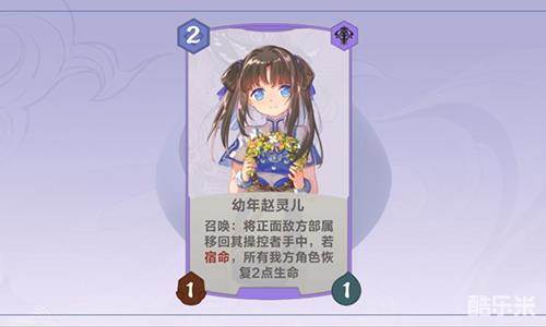 此卡牌召唤即可退回一名正面敌方部署,触发宿命效果还可给全场加血,只要预判靠谱,运气在线,我们的小灵儿,你值得拥有!但是灵儿命还是有点脆的,为了避免当年悲剧重现,还是多用几个血厚小伙挡挡攻击吧~