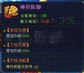 1.4 神符技能 玩家神符升到一定的阶数时,可以消耗“神符技能激活书”来激活神符技能 神符技能激活后,可通过使用“神符技能升级书”来提升技能等级