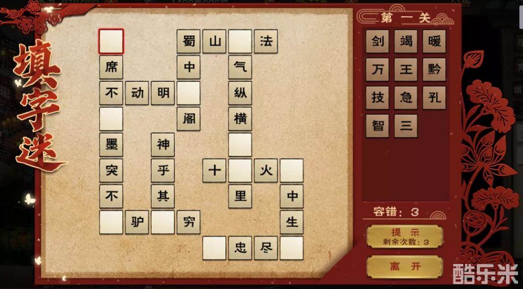整个庙会活动期间,各侠士都可以找落榜书生挑战填字谜。