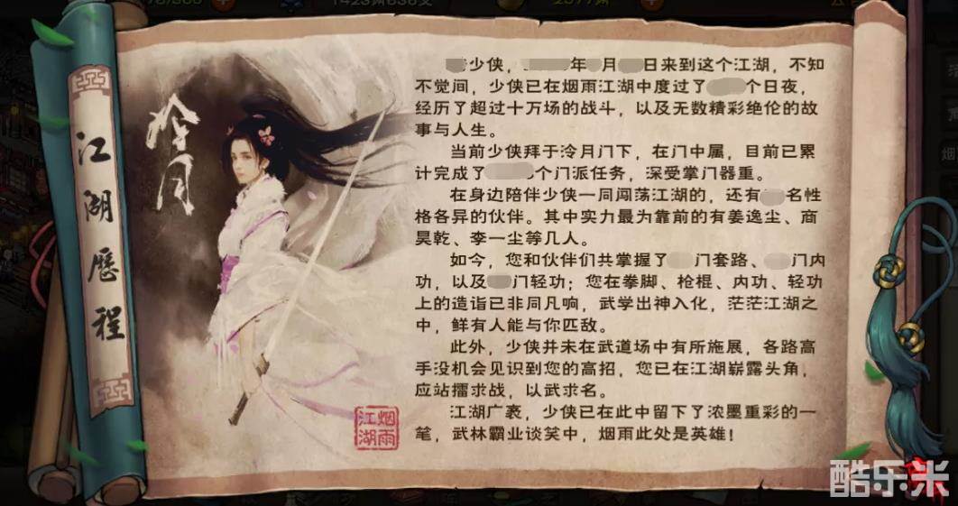诸多侠士也从懵懵懂懂的小新人成长为一代江湖大侠。找算命先生算上一卦,便可知自己的江湖历程了!
