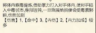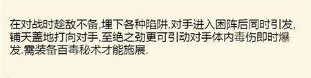 获得方法:万毒手400级后,在子时的大风天气下前往五毒万毒林触发。