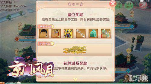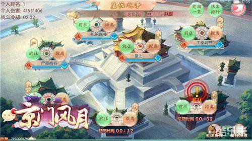 自上周版本更新开启起,京门风月每周六晚8:15都将准时开启皇位之争活动,限时30分钟,家族的成员需要团结一致,共同参与活动。各家族需要在家主的带领下参与皇位之争活动,活动开始之初皇宫处于封禁状态,玩家需要先攻打六部,六部初始为六部尚书占领,战胜六部之二以上才能继续向着权力中心进军。最后杀死六部尚书的玩家所在家族获得该部的控制权。总共只有六部,想要占领两部以上就要抓紧时间,抢在别的家族之前占领先机。