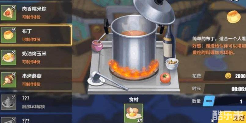 这里要注意的是如果玩家身上没有【布丁】食物道具,就需要玩家在【船舱】功能中通过派遣任务或者烹饪布丁来获得食材。