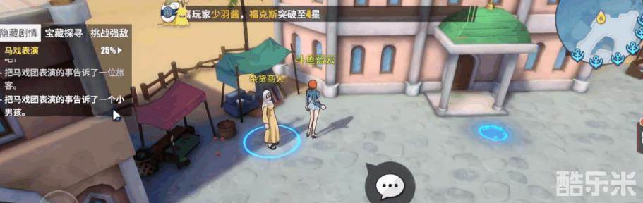 玩家在跟服装商人交谈完后,系统会提示你去和其他的商人交流,在服装商人的上方,有一个工具商人,他会跟你抱怨被恶人压榨的痛苦,在之后,系统会提示你去商业街右边那里转转,那里有一个水果商人,这是一个套着围裙的阿姨,她告诉你她也被恶人压榨了。