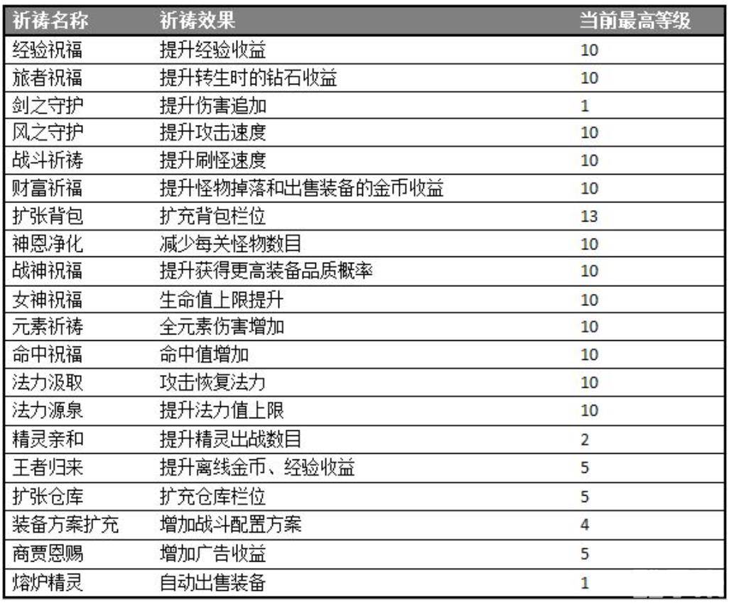 玩家可以在她的指引下用钻石参加这个仪式,就能获取祈祷属性,这些属性可以帮我们在战斗或者获取收益的时候起到增益作用,而且还是永久有效的,对玩家来说,是很有帮助的。