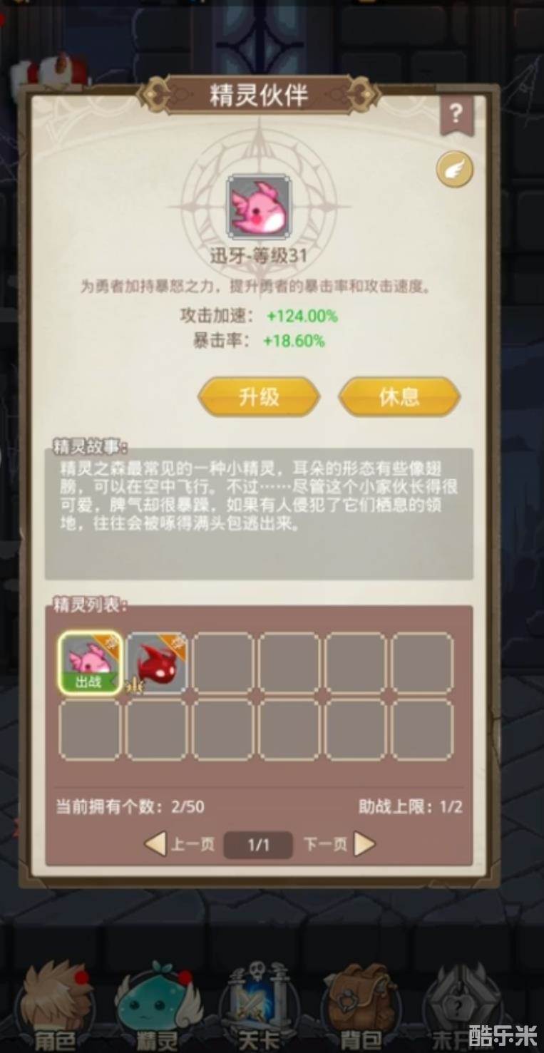 这些属性对应的类型多种多样,有的能提升战力,有的能提高我们的收益,还有的可以扩充背包或者减少每个关卡遇到的精灵数量。属性一共有20多种,但是我们每次只能选其中5种,并且升级机会只有一次。