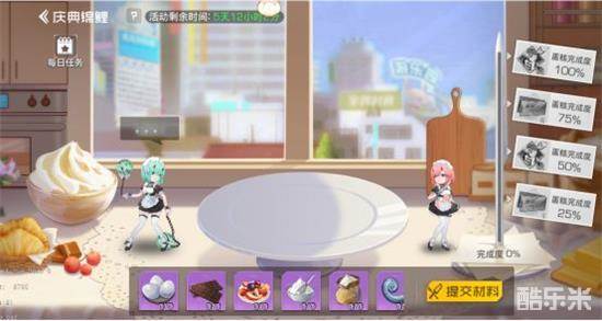 活动规则:玩家通过每日任务获得对应的蛋糕材料,提交蛋糕材料可以提升蛋糕的完成度,领取对应进度的奖励。