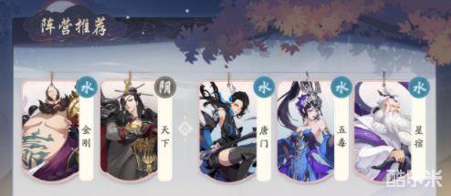 2.成型了之后不管是五毒的持续站场还是唐门、星宿的高额爆发都很恐怖,加上金刚教绝技减免一半伤害且免疫控制和天下会绝技压制加群体嘲讽,能够最大效率的保证后排三位“用毒高手”的叠毒效率。同时,阵容还能激活【4水1阴】的羁绊属性加成。