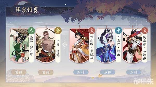 面,防御增益效果强悍。少林的群体护盾以及辛晓风的群体减伤,有助于吕沛杰进场切敌方的后排C位大侠,同时能够激活【金、木、水、火势力阵营各一名侠客】羁绊,增加10%攻击力和15%生命值。