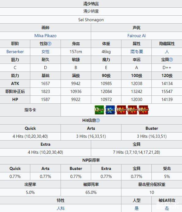 以上就是小编整理的关于《FGO》泳装清少纳言属性一览的全部内