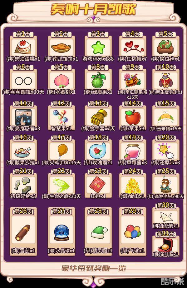 1、在当月每充值60金币,即可免费领取1次“豪华签到”奖励;