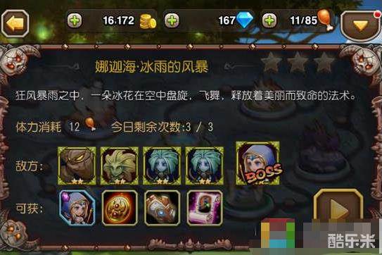 通关精英副本会有几率掉落该关卡BOSS的英雄灵魂石。同一个精英副本每天可以挑战3次,消耗体力12。