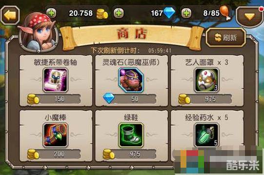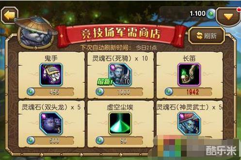 商店会随机刷新出英雄的灵魂石,有的可以用金钱直接购买,高级点的则需要钻石才能购买。
