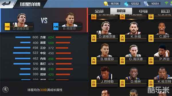 球员属性对比分析:可以看出格里芬的属性更加均衡,而诺维茨基的属性更偏向于进攻,诺维茨基有着498的三分、522的中投、510的靠打属性,外线和中投得分能力非常出色,而格里芬的有着498的内线和510的灌篮属性,更适合通过上篮和灌篮拿下得分。而在防守上,格里芬有着498的篮板、390的盖帽和408的防守属性,防守能力远远超过了诺维茨基。