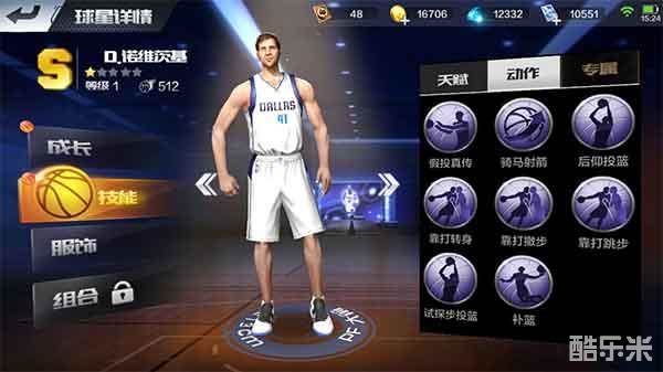 投篮动作对比分析:两名球员都有着后仰投篮和补篮两种动作,另外格里芬还具备了自抛自扣和补扣动作,而诺维茨基有着试探步投篮和骑马射箭动作。两名球员的投篮动作都非常契合球员属性,高篮板和高灌篮属性的格里芬可以有更多机会抢到篮板球,触发补篮和补扣动作。而诺维茨基可以在外围寻找机会进行中投和三分,搭配上后仰投篮和试探步投篮,更容易完成得分。