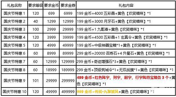 1. 国庆节特惠礼包,每购买一个,会额外获赠一个黄色【欢笑喵咪】图鉴。