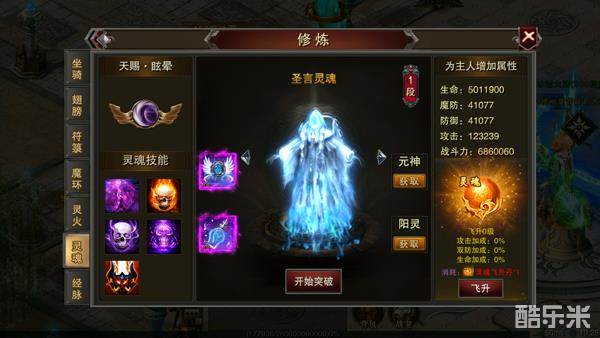 灵魂系统在游戏内达到一定激活条件即可激活,灵魂的主要作用是眩晕,当灵魂升阶至11阶的时,会领悟秘技,攻击或者施法有一定几率触发,收到眩晕技能减益效果的目标在一定时间内无法移动,攻击或者施法,两者灵魂阶位相差越大,突破次数相差越大,触发的概率和持续时间越长,使用灵魂升阶丹可以升灵魂等级,当灵魂等级达到17阶以后则需要用到突破丹继续进行升阶,灵魂升阶丹可在进阶副本内获取,商城购买获取,突破丹可以使用升阶丹兑换或商城购买获得。