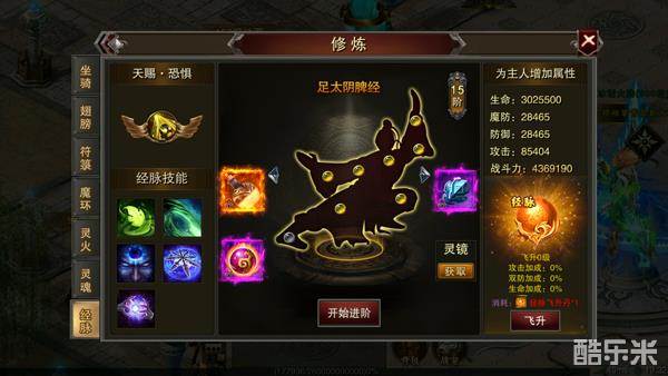 经脉系统在游戏内达到一定激活条件即可激活,经脉的主要作用是恐惧,当经脉升阶至11阶的时,会领悟秘技,攻击或者施法有一定几率触发,收到恐惧技能减益效果的目标在一定时间内无法移动,攻击或者施法,两者经脉阶位相差越大,突破次数相差越大,触发的概率和持续时间越长,使用经脉升阶丹可以升经脉等级,当经脉等级达到17阶以后则需要用到突破丹继续进行升阶,经脉升阶丹可在进阶副本内获取,商城购买获取,突破丹可以使用升阶丹兑换或商城购买获得。