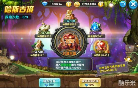 玩家等级达到52级进入跨服小镇即可参与哈斯古境。哈斯古境分为古境探索和古境争夺两个玩法。古境探索每日10:00-22:00开启,玩家通过探索并挑战不同等级的古境获得神圣精华;在每日10:00-22:30开启的古境争夺玩法中,玩家可将正在探索古境的玩家选择为争夺对象,战斗胜利者可获得神圣精华。