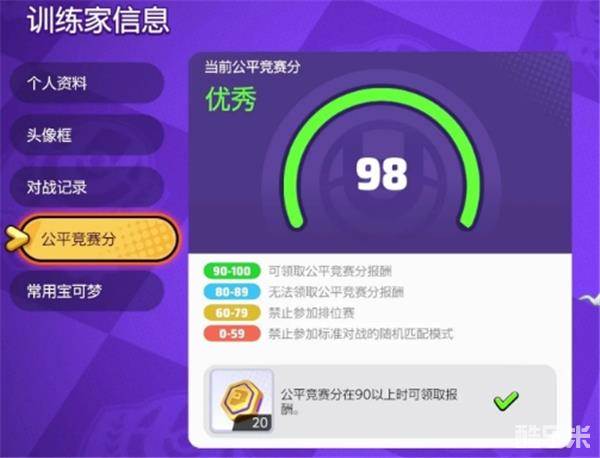 在训练家信息里的公平竞赛分保持在90~100区间每天可以领20亿奥斯币