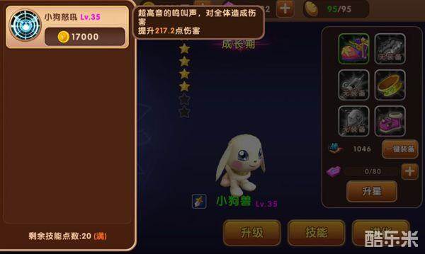 小狗怒吼:可别小看小狗兽的这个技能,它不仅是群攻技能,而且输出能力也是非常的乐观!堪称副本的收割机,让您在《数码宝贝:究极进化》游戏的前期阶段事半功倍!