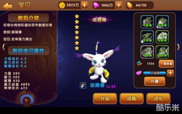 从属性介绍可以看出迪路兽的敏捷相当的出众,加上强力的群攻输出技能-猫猫拳,让对手几乎没有还手的余地!
