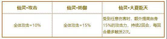 【大夏斩】:释放六芒星斩击随机选择敌方四人造成攻击1000%的伤害,并降低其10%的治疗效果和护盾获得量,并无视30%的防御,60%概率使其进入眩晕状态,攻击力低于自身的单位必定进入眩晕状态,持续1回合。
