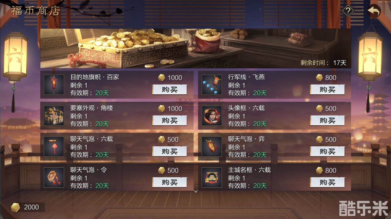 ·商品类型包括:头像框、要塞外观、聊天气泡、主城名框、信件背景、行军线特效、画笺等