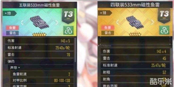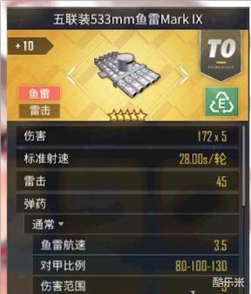 已经是炮驱了。所以鱼雷方面最好选磁雷,五联彩磁雷、四联磁雷都是可以的。下位就是金五联磁雷、五联鱼雷、三联磁雷、四联533等鱼雷了。