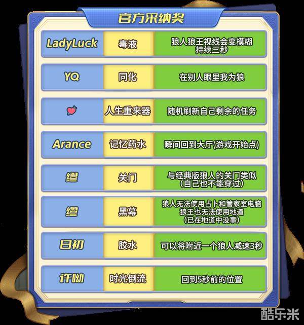恭喜以上玩家,获得“游戏道具:金砖”一份!《推理学院》后续将使用各位设计者的方案创作新的道具,加入“血月模式”为小伙伴们创造更多快乐!