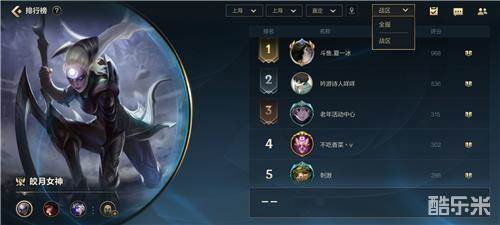 这里可查看各个英雄的全服第一召唤师, 根据定位寻找你想要查看的某个英雄。