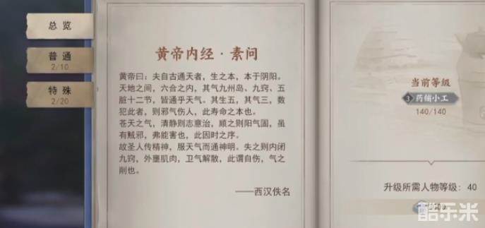 再来就是炼药技能,炼药制作的是一些药品,可以在战斗中进行状态的补充。这个等级提升前期也是采药,最好是采集一些特殊药材,可以获得额外的经验奖励。在等级为小工之后,就要药理任务的完成了,因为想要进行提升等级的话,任务是比较关键的。任务总体难度不高,之后花费碎银来提升等级即可。