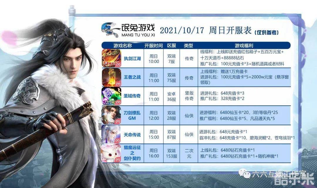 氓兔游戏官网-10月17号开服表-下周新游预告