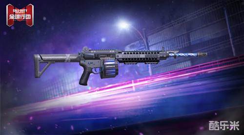 同样运用轻质化工程材料打造的M4LMG-致命螺旋除深邃黝黑的底色外,在弹匣及枪管处点缀星云般流动的蓝紫光晕。