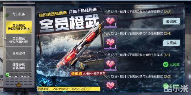 10月12日-10月17日期间参与1场任意模式