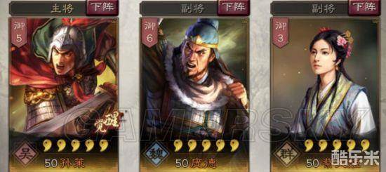 分析:孙策和庞德是比较容易获得的武将,蔡文姬是低统御的辅助武将。三人搭配在一起只有14总统御,开荒非常适合。孙策和蔡文姬可以组成不错的双治疗搭配,以强力的治疗为团队续航减低战损。进攻端可以依靠孙策和庞德打伤害,2人都有不错的输出,配备上输出战法会更加强力。