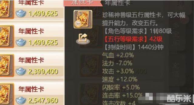 经验:想要吃年属性卡的话,五行吃到42,然后单吃火五行就可以了。
