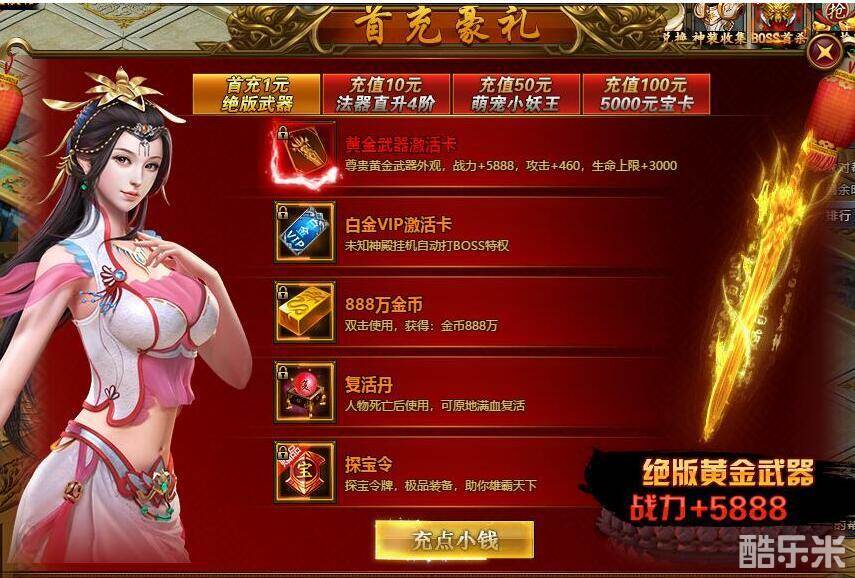 开服活动里面主要都是使用元宝或者绑定元宝、充值来进行的活动,七天下来,超值抢购里面绑元能够购买的东西一个都不要拉下、猎杀BOSS里面按照要求击杀完每个档次的BOSS还能够领取一份不错的奖励。开服冲榜才是开服活动中最最最核心的一个玩法,前三天的冲榜第一名奖励是九阶的绝版装备(其实是非常非常难入手),四到六天的冲榜第一名奖励则是十二阶的极品装备,入手的难度比之前的有过之而无不及,对战力的提升是超级大的,而且没有最低要求限制(意味着如果这区只有一个人的话、这个人就能包揽所有的第一名奖励,即使完全不氪金)。