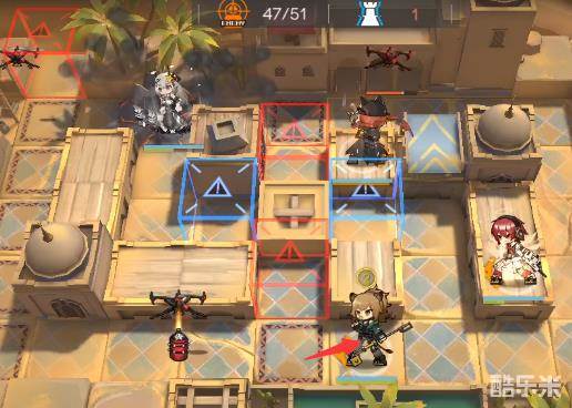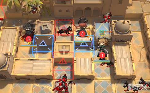如下图所示继续部署干员傀影 → 能天使(向左)