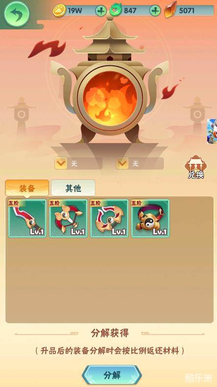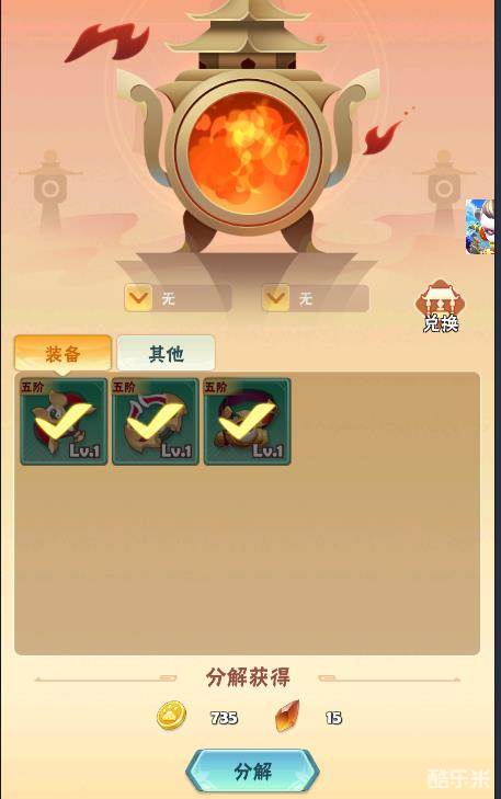 3.选中不需要的装备,点击分解就行,分解获得一些金币和碎片