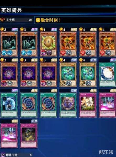 这套卡组的思路很简单,火焰侠+融合生物/池沼王快速出骑兵穿防削血,能一波打不死就一次次打,残局根据抽到的卡决定是拉骑兵出来还是拉闪光火焰翼人效果伤害斩杀。整体手感流畅,发技能的时候,手里有融合和烈焰侠的时候,可以把融合塞回卡组,再用烈焰侠检索融合,很容易一回合多拉几个大怪OTK。